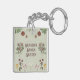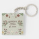 Ein Vintager Garten-Schlüsselanhänger mit Blumenelementen und individuellem Text in den Farben Grün, Rot, Rosa, Weiß und Gelb.