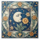 Ein Mond mit menschlichem Gesicht, umgeben von Sternen und gelben Blumen, blauer Hintergrund, Blumenschmuck, quadratischem Rahmen, Vintager Stil