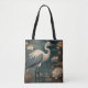 Vintage Malerei einer botanischen Szene mit einem blauen Kran, umgeben von weißen Lotus-Blume