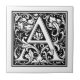 Ein Vintager, schwarz-weißer Buchstabe "A" mit floralfarbenem Design.
