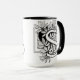 Ein sehr schlichter Buchstabe "S" wird durch einen Rahmen und zwei Zweige großer Blätter unterlegt, was die Gesamtwirkung einer Collage ergibt.