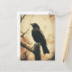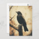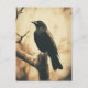 Ein Vintages, digitales Kunststück einer Krähe, das den Vogel auf einem Baum mit gealterten Texturen und klassischem, launenhaften Charakter zeigt.