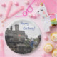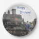 Dieser Geburtstagspapier-Teller kennzeichnet einen alten Vintagen Dampfzug von Essex, Connecticut. Vervollkommnen Sie für diesen speziellen Typ, der Lieben railroadania.