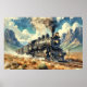 Vintager Dampfzug in der Wüste, Eisenbahn Poster