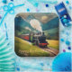 Diese Party-Papier-Teller verfügen über einen alten Dampfzug vor einem gebirgigen Hintergrund.