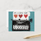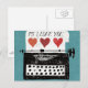 © Michael Mullan / Wild Apple. Eine alte schwarzweiße Schreibmaschine mit blauem Hintergrund. Die Worte PS I Liebe Sie können auf dem Bild zu sehen.