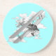 Vintager Kunstentwurf des Doppeldeckerfliegens durch die Wolken
