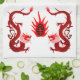 Vintager Drachenurlaub Rot und Schwarz Geschirrtuch