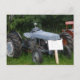 Ein nahes Foto eines duskyblau-blauen alten Vintagen Traktors mit einem handgefertigten Schild an der Vorderseite mit einem Hauch eines roten Traktors. Ideal für Vintage Farmliebhaber.