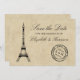 Diese speichern die Dattelkarten perfekt für alle Paare, die eine romantische Hochzeitsfeier für den Jahrgang planen. Das Design besticht durch einen antiken Hintergrund mit einem Eiffelturm mit schwarzer Tinte und einer postmarkierten Briefmarke. Das einfache Design kann personalisiert sein, um Ihre besondere Veranstaltung zu Anzug und wird die perfekte Ankündigung für jedes Vintage thematische Party, einschließlich: Brautparty, Verlobungen, Polterabende, Geburtstagspartys und vieles mehr.