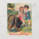 Eine Vintage Erntedank Grußkarte mit zwei bezaubernden Kindern mit zwei Puten. Vintage Wünsche aus einer wertvollen kleinen Erinnerung des Erntedanks Vergangenheit. Das ist ein Muss für die Ferien.