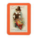 Vintage Jungenpilgerin mit einer leckeren Kneipe, die dem Erntedank Wünsche an diesem einzigartigen Magneten gibt. Verwenden Sie als Erntedank Dekoration oder geben Sie als kleines Geschenk!