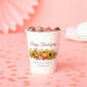 Dieser altmodische Feiertagsparty-Becher aus Papier zeichne Orangenkürbis, Herbstlaub und niedliche Herbstsonnenblumen. Nostalgische Happy Thanksgiving Dekoration mit brauner Schrift Ihres Firmennamens und personalisiert berufliche Botschaft auf der Rückseite für Kunden und Freunde.
