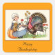 Vintager Erntedank. Ein hübsches Mädchen, das einen Truthahn füttre.