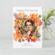 "Herzliche und zeitlose Erntedank-Wünsche mit dieser Vintag inspiriert Grußkarte, mit einer anmutigen Frau umgeben von Herbstblättern. Feiern wir gemeinsam die Saison der Dankbarkeit und der gepflegten Momente.