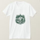 Ein Vintag inspiriertes Design mit einem dichten Wald von immergrünen Bäumen, einem kurvenreichen Weg und einem Berggipfel in der Ferne. Das Design ist einfach, aber auffallend, mit einem Schwerpunkt auf sauberen Linien und kühnen Formen. Die Farbpalette beschränkt sich auf Grün und Weiß, wodurch eine zeitlose und raffinierte Ästhetik entsteht.