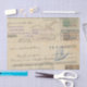 Ein Vintager Stildruck mit Briefmarke und Siegeln, der sich hervorragend für Geschenkverpackung, Entcoupage, Scrapbooking oder Papierhandwerk eignet.