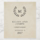 Diese eleganten, Vintagen Hochzeitsweinetiketten sind mit einem antiken Papierhintergrund, einem schwarzen Lorbeerkranz und einem Monogramm versehen.