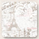 Ein nahtloses Vintages Muster, das sich durch Romantik auszeichnet. Dieses wunderschöne Design ist eine Collage Vintager Illustrationen. Das Plastikgetränk-Coaster-Design umfasst den Eiffelturm, Vintage Postspuren und handgeschriebene Schriften. Es ist eine schöne weiche Pastellfarben in blassrosa und braun mit einem Schwerpunkt auf Frankreich - voll von antiken Schriftart und Grafiken. Suchen Sie ID226 um andere Farbauswahl und Produkte mit diesem romantischen Muster zu sehen.
