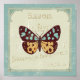 © Sue Schlabach / Wilder Apple. Ein Vintage Bild eines Schmetterlings mit Mustern auf seinen Flügeln. Die Muster auf den Schmetterlingsflügeln bestehen aus verschiedenen Farben.