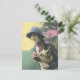 Vintager Glamour Girl und Deutsche Shepard Postkarte