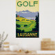 Vintage französische und europäische Reisewerbung - Europäische Reisewerbung - Vintages Golf Lausanne City Lake Switzerland Poster
