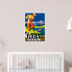 Reproduction poster des Golfplatzes in der Walliser Schweiz. Die Crans-sur-Sierre. Es zeigt Berge und einen See im Hintergrund. Der Golfplatz wurde ursprünglich 1929 entworfen.
