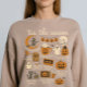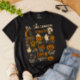 Dieses spielerische Halloween-T - Shirt-Design besticht durch einen niedlichen Geist, der eine orangefarbene Mütze trägt, einen festlichen Lollipop hält und von einer lächelnden Jack-o'-Laterne begleitet wird. Mit freundlichen Fledermäusen, die herumflattern, verbindet diese hübsche Illustration sprichwörtliche und reizvolle Elemente, die sich perfekt zum Feiern der Halloween-Saison im Stil eignen!