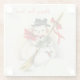 Ein süßer kleiner Schneemann mit grünen Fingern und einem schwarzen Hut hält einen gelben Strohbesen mit einem roten Band. Gruß: Frohes Neues Jahr! Bild der Vintagen Grußkarte auf einem benutzerdefinierten Hintergrund.