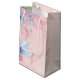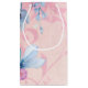 Schöner, Vintag aussehender Heißluftballon mit einem Paar und einer altmodischen Teleskopillustrierung mit einem blühenden rosa und blühenden Hintergrund.