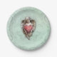 Ein einzigartig charmantes Vintages Design mit einem Kirub, der ein verwittertes rotes Herz zeigt. Umgeben von subtilen barocken Schnörkeln und Rahmen, ist der Hintergrund eine rustikale Grunge Textur in Aquatönen mit grauen Obertönen. Dieser Teller ist eine wunderbare Wahl für Valentinstag Partys, Hochzeiten, Verlobungen, Jubiläen und andere romantische Anlässe. Diese Papierplatte ist in zwei Größen erhältlich: 7" und 9". Stellen Sie sicher, dass Sie die Größe auswählen, die Ihren Event und Anforderungen Anzug. Der 9" Teller eignet sich besser zum Servieren von Vorspeisen oder Party und der 7" Teller eignet sich gut zum Kuchen.