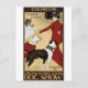 Vintager Hund zeigt Poster Chicago auf einer Postkarte