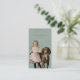Vintage inspirierte Geschäftskarten, durch die red_dress, eine antike Illustration des niedlichen blonden Mädchens kennzeichnend, wenn die Haltung, großen braunen Hund hält, mit den langen Ohren. Mit blauen Augen, den Vintagen Mädchenohren ein rosa Kleid, geschmückt mit dunklem rosa Bogen und zusammenpassendem Haarbogen. Das antike Bild wird auf blauem Hintergrund gedruckt und eine helle Beschaffenheit war, für einen abgenutzten Blick angewandt. Mit Ihrem Namen leicht besonders anfertigen, Titel und Kontaktinformationen.