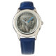 Kinderuhr aus Edelstahl mit blauem Lederarmband