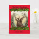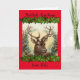 Vintager Hirschkopf, mit heiligen Graslandschaften auf rotem Hintergrund. Fügen Sie Ihren eigenen Namen/Familiennamen auf der Vorderseite und Ihre Nachricht im Inneren ein. Traditioneller Yuletide-Gruß, alternative Weihnachtskarte für die Wintersaison. Geeignet für Heiden, Wikkaner.