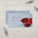 Elegante Vintage Kaskadenblau-Blume Shop Visitenkartendesign mit dekorativen Eckrollen oben und unten mit einem Foto von drei rote Rosen in der unteren Ecke. Der Hintergrund erhält eine strukturierte Grunge-Anwendung für ein antikes Papierlook. Dieses Design kommt in mehreren fertigen Hintergründen. Dieses Design kommt auch auf viele andere Schreibwaren Produkte, um Anzug alle Ihre Hochzeit Set benötigt.