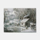 Vintage Currier & Ives Blockhütte Winterweihnachtszene - Begrüßen Sie Freunde, Familie und Gäste mit dieser Vintagen Currier & Ives Bildtür.