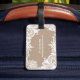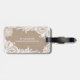 Dieser elegante Gepäckanhänger kennzeichnet einen Leinwand Texturhintergrund und ein Spitze décor für einen stilvollen Effekt. Zeitloses und nobles Entwurfsideal für einen Weltreisenden mit einer Richtung der Art und der Kultiviertheit. Addieren Sie Ihre eigene Benennung.