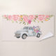 Handtuchhandtuch mit einer Vintagen boho-Stil Aquarellbild. Ein alter LKW mit einem Strauß Blume hinten. Ein schönes Bild mit Flair auf dem Land. Hübscher Rosenstrauß entlang der oberen Grenze.