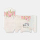 Gastgeschenk Hochzeit Boxen oder andere Veranstaltungen mit einer Vintagen boho Stil Aquarellbild. Ein alter LKW mit einem Strauß Blume hinten. Ein schönes Bild mit Flair auf dem Land. Hübscher Rosenstrauß entlang der oberen Grenze. Hintergrund ist ein verblasstes Vintages Collage Muster.