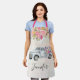 Schürze mit einer Vintagen boho Stil Aquarellbild. Ein alter LKW mit einem Strauß Blume hinten. Ein schönes Bild mit Flair auf dem Land. Hübscher Rosenstrauß entlang der oberen Grenze. Hintergrund ist ein verblasstes Vintages Collage Muster.