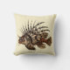 Das quadratische Throwkissen, das einen Vintagen Lionfishkunstdruck kennzeichnet, können Sie die Hintergrundfarbe, nachdem Sie ändern "geklickt haben, besonders anfertigen ihn".