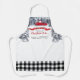 Herrliche Schürze mit eigenem Familiennamen, Namen oder Firmennamen und exquisiter handgemalter Wasserfarbe Winterlandschaft von Bergen, Wald, altmodischer Vintager LKW mit Weihnachtsbäumen, Rotnamenbanner und der Phrase "Fresh cut Christmas Trees" in Rot und Schwarz Kalligraphie und Blocktypografie. Dekorative Rahmen unten im Buffalo kariert-Stil mit weißem und schwarzem karierten Muster. HINWEIS: Wenn Sie Gurte in der gleichen "roten" Farbe wie LKW haben möchten, geben Sie einfach auf der Farbbox "9f0100" Hex-Code. Ein einzigartiges Geschenk, das Sie schätzen können!