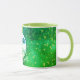 Der klassische Mann auf dem Mond in aquamarin Blau, Grün und Weiß. Set gegen einen blauen, grünen Sternenhimmel. Er trägt einen Strick Winterhut. Einzigartig und skurril. Die Personalisierung ist optional.