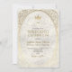 Mit diesem Vintag inspirierten Hochzeitskonzert mit luxuriösem Elfenbeinmarmor und einem faszinierenden goldenen Blumenrahmen laden Sie Ihre Gäste zeitlos ein. Die ovale Grenze und das Monogramm-Wappen fügen eine königliche Touch hinzu, während die elegante Serif- und Schrift-Typografie Raffinesse und Romantik vereinen. Diese Einladung eignet sich ideal für klassische, formelle oder hochklassige Hochzeiten und Anzüge traditioneller Zeremonien und luxuriöser Empfänge. Ein hervorragendes Stück für Ihre luxuriöse Hochzeitssuite.