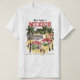 Vintager Erdton-Mexiko-T - Shirt, Bild von einer alten Reiseanzeige. Roter, gelber und grüner Entwurf mit Palmen und Stadtdorf.
