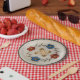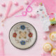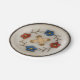 Mit diesen niedlichen Tellern mit einem Bild eines Vintag gestrichenen Porzellan-Knopfes verleihen Sie Ihrem Party etwas Charme und Laune. Der in Frankreich im späten 19. Jahrhundert gebaute originale Knopf ist mit vier süßen Blume (zwei rot und zwei blau) mit gelben Mittelpunkten dekoriert. Ideal für eine nähthematische Veranstaltung oder einen Fan von schlichter und minimalistischer Dekoration. Fröhlich, einzigartig und niedlich als Knopf!