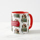 Eine Vintage Illustration eines Weihnachtsmannes und von Freunden im antiken Automobil. Ideal für Weihnachtsgeschenke und Dekoration. Passen Sie die Weihnachtszeit-Tasse mit Ihrem Text an und machen Sie es zu Ihrem eigenen.