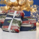 Vintager Navy- & Red Car-Tree oben Geschenkpapier