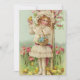 Diese Einladung enthält ein Vintages Osterbild, ein junges Mädchen mit einem Osterkorb und einem kleinen Küken. Der Text auf der Rückseite kann an Ihre Bedürfnisse angepasst werden, ebenso wie die Hintergrundfarbe. Eine wunderbare Einladung zum Osterbrunch!